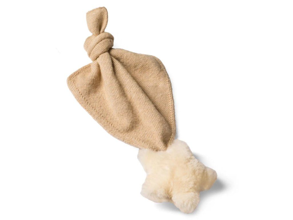 Kuscheltuch aus Merinowolle mit Knotendetail und Stern aus Lammfell